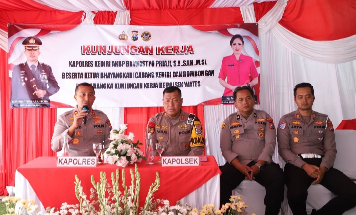 Cybertv.id-KEDIRI – Dalam rangka memperkuat kedisiplinan dan semangat pengabdian anggota, Kapolres Kediri AKBP Bramastyo Priaji, S.H., S.I.K., M.Si. bersama Ketua Bhayangkari Cabang Kediri Ny. Ratih Bramastyo melaksanakan kunjungan kerja (kunker) ke Mapolsek Wates, Senin (3/11/2025).