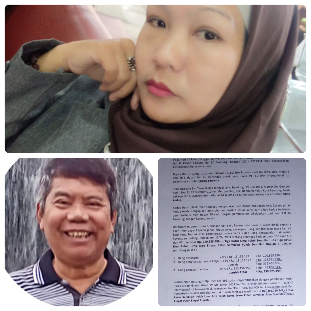 Tri Setiowati SH MH, Istri Almarhum Setia Budiana SH, Pimpinan Elteha Internasional Jawa Barat meminta agar Presiden Prabowo turun tangan menyelesaikan derita ribuan eks karyawan Elteha Internasional di Indonesia. Karena menyangkut ribuan keluarga yang belum mendapatkan haknya hingga kini.
