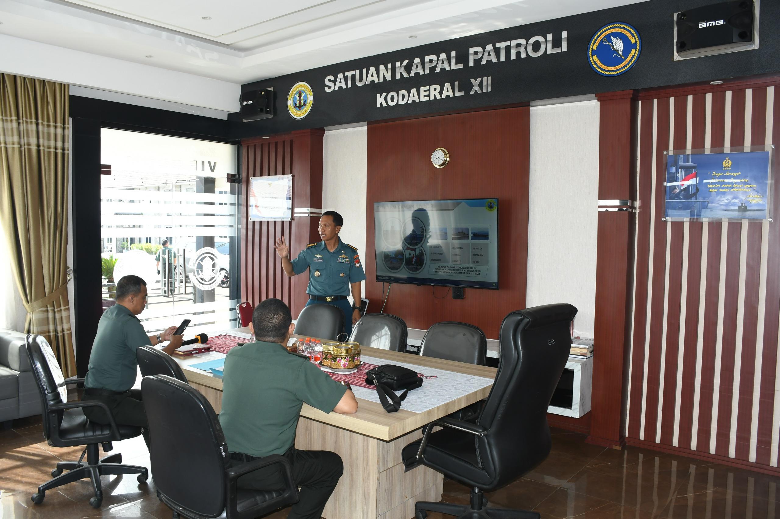 Tim Dirjen Strahan Kemhan dipimpin oleh Kasubag Ditrah Komhan, Letkol Inf Heru Setyatmojo, S.E., didampingi Kasi Monitoring dan Evaluasi Kebijakan Subdit Analisa Strategis (Anstra) Ditrah Komhan, Mayor Arm Eri Hadi, S.H., M.Si. Kedatangan tim diterima dan didampingi oleh Asops Dankodaeral XII, Kolonel Laut (P) Ainul Muslimin, S.E., M.Tr.Hanla., M.M., CHRMP.
