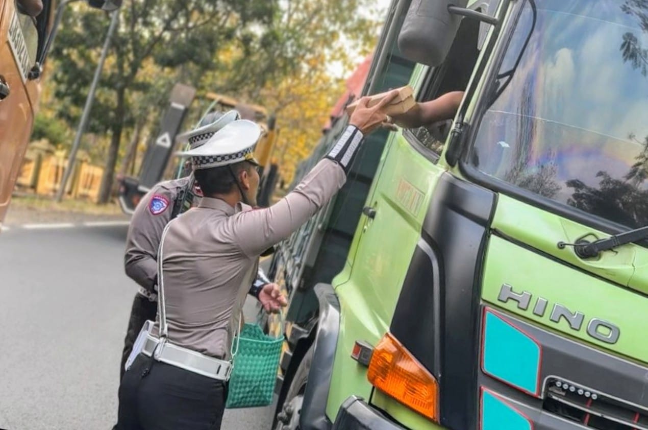 Kasat Lantas AKP Nanang Hendra Irawan, S.H., M.H. mengatakan, aksi bagi-bagi makanan ini dilakukan sebagai bentuk kepedulian kepada masyarakat, terutama sopir dan penumpang yang terdampak kemacetan panjang di wilayah rawan dan terpencil.
