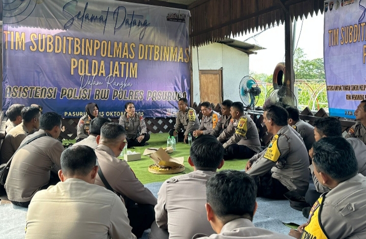 Cybertv.id-PASURUAN — Direktorat Binmas Polda Jawa Timur melalui Tim Subditbinpolmas melaksanakan kegiatan Asistensi Kampung Tangguh Semeru (meliputi P2B, Polisi RW, dan Omah Rembug) di Alun-alun Desa Karangsono, Kecamatan Wonorejo, Kabupaten Pasuruan, pada Rabu (15/10/2025).