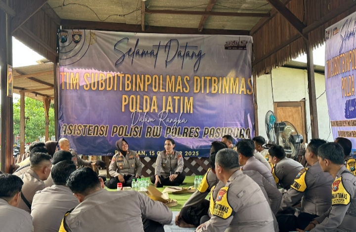 Cybertv.id-PASURUAN — Direktorat Binmas Polda Jawa Timur melalui Tim Subditbinpolmas melaksanakan kegiatan Asistensi Kampung Tangguh Semeru (meliputi P2B, Polisi RW, dan Omah Rembug) di Alun-alun Desa Karangsono, Kecamatan Wonorejo, Kabupaten Pasuruan, pada Rabu (15/10/2025).