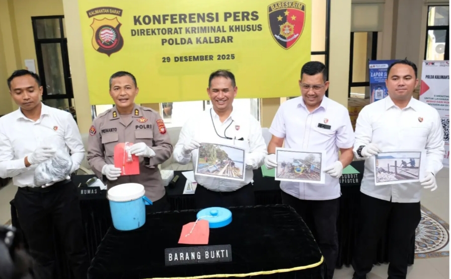 Cyber tv.id – Pontianak, Kalbar – Kepolisian Daerah Kalimantan Barat melalui Direktorat Reserse Kriminal Khusus terus mengintensifkan penindakan terhadap aktivitas Penambangan Emas Tanpa Izin (PETI). Sepanjang periode 1 Juli hingga 28 Desember 2025, Ditreskrimsus Polda Kalbar berhasil mengungkap sejumlah kasus tindak pidana pertambangan mineral dan batubara di berbagai wilayah Kalbar.
