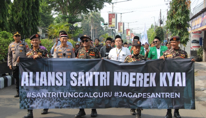 Cybertv.id-Kediri Kota – Polres Kediri Kota melaksanakan pengamanan kegiatan Longmarch Bersama Santri Dalam Rangka Aksi Damai Jaga Marwah Pesantren dan Kyai dengan tema “Aliansi Santri Nderek Kyai”. Kegiatan yang diprakarsai oleh Himpunan Alumni Santri Lirboyo (Himasal) Kabupaten/Kota Kediri ini berlangsung dengan tertib dan kondusif, Selasa (21/10).