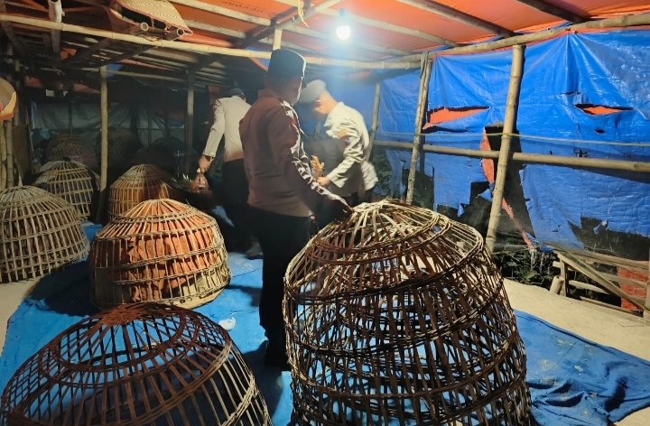 Dalam penggerebekan tersebut, petugas mengamankan sejumlah barang bukti, antara lain 3 buah sangkar ayam, 2 ekor ayam, 1 buah bandang (alat adu ayam), dan 1 buah kiso (alat membawa ayam).