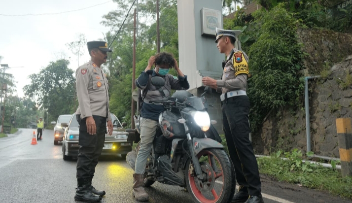 Polres Malang Bagikan Masker ke Pengendara di Perbatasan Lumajang Dampak Erupsi Semeru