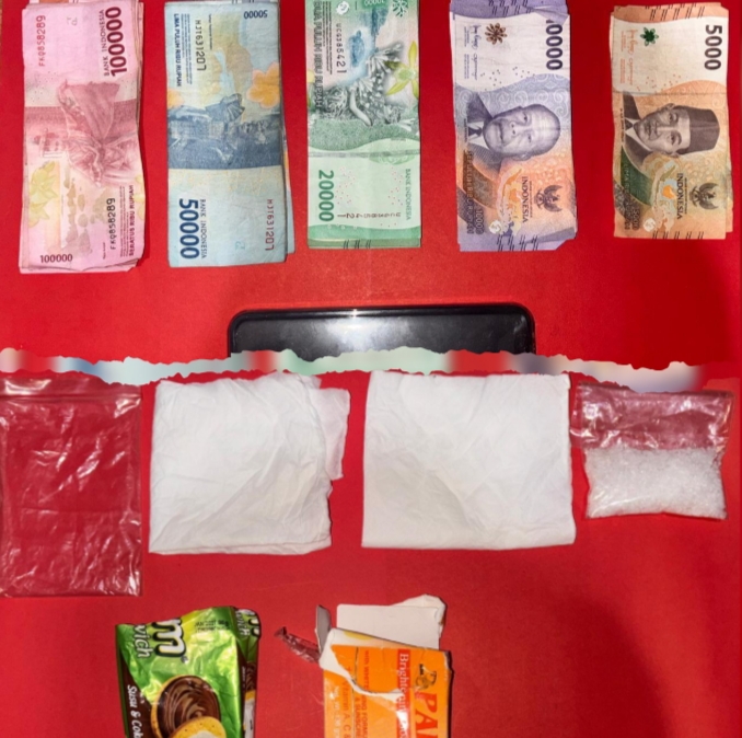 Dari hasil penggeledahan, petugas menemukan sejumlah barang bukti, diantaranya 1 plastik klip berisi sabu dengan berat kotor 17,69 gram, uang tunai sebesar Rp1.430.000 yang diduga hasil transaksi narkoba.