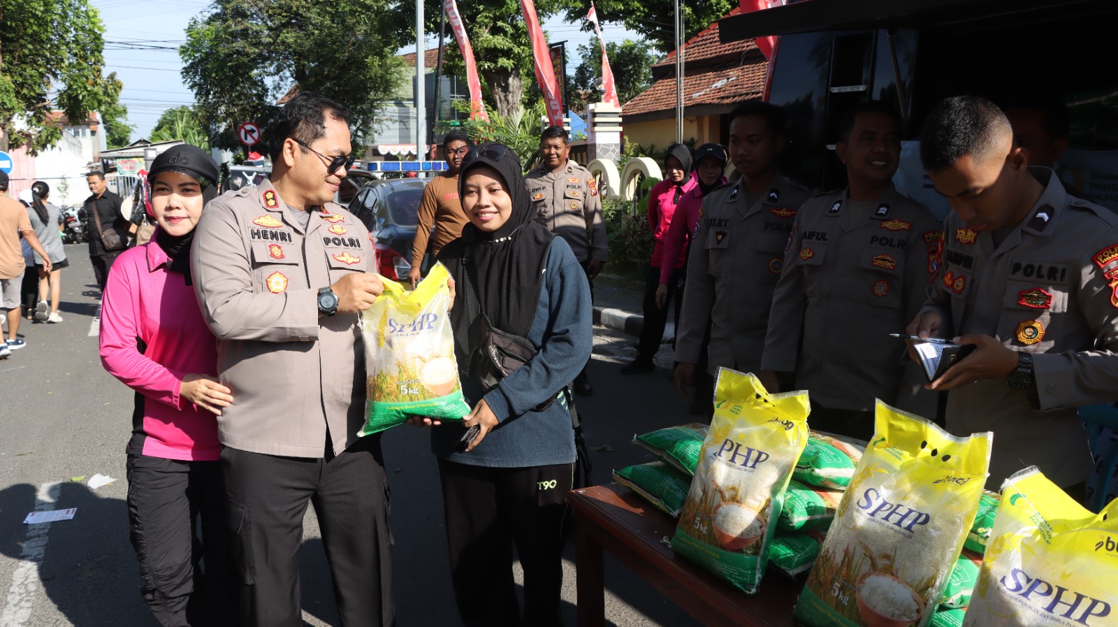 Polres Nganjuk Gelar Pasar Murah di Car Free Day, Beras SPHP Bulog Diserbu Warga
