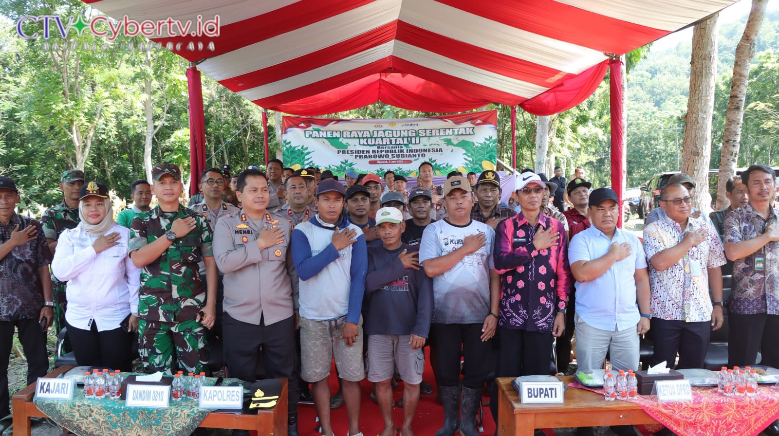 Cybertv.id-Nganjuk – Polres Nganjuk bersama Forkopimda mengikuti Zoom Meeting dan melaksanakan panen raya jagung serentak Kuartal II bersama Presiden Republik Indonesia Bapak Prabowo Subianto di Dusun Dance, Desa Bajang, Kecamatan Ngluyu, Kamis (5/6/2025).