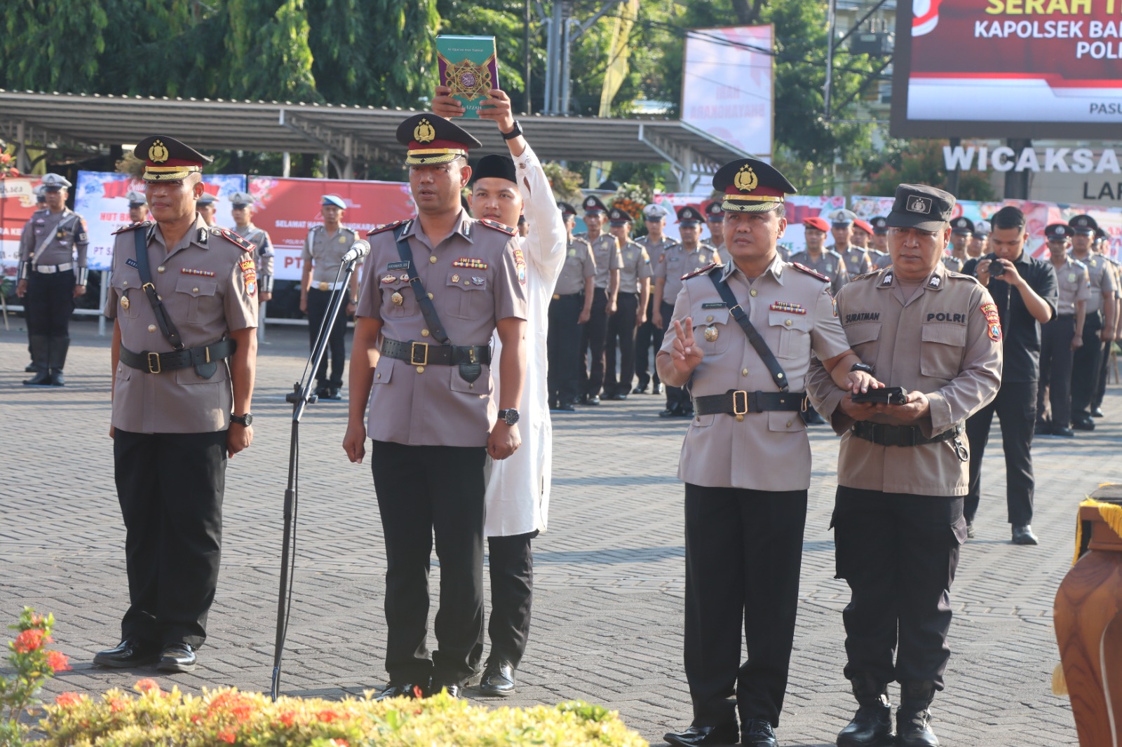 Dalam kegiatan tersebut, dua pejabat utama yang melaksanakan sertijab adalah Kompol Akhmad Sukiyanto sebagai Kapolsek Beji dan Kompol Hudi Supriyanto sebagai Kapolsek Bugul