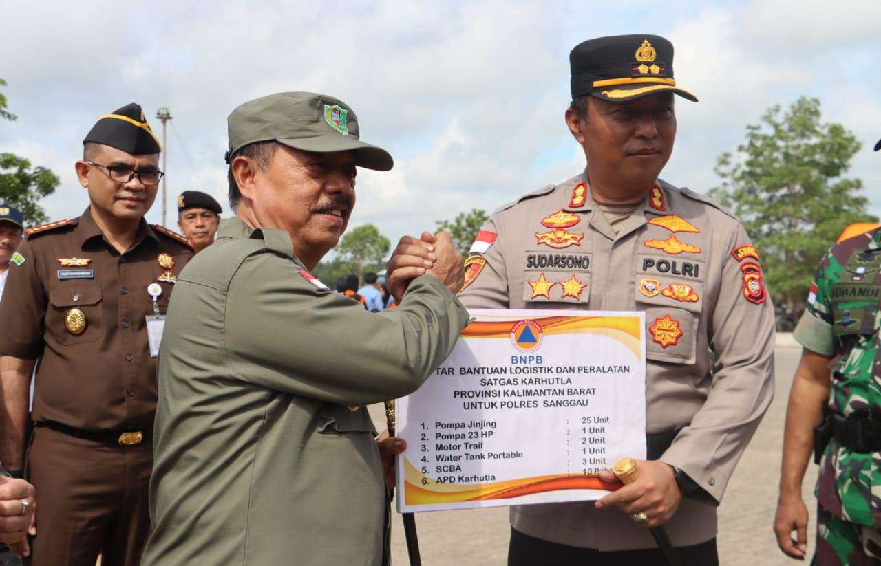 Kegiatan apel tersebut juga menjadi momentum penyerahan bantuan logistik dan peralatan dari Satgas Karhutla Provinsi Kalimantan Barat kepada Polres Sanggau dan Kodim 1204/Sanggau. Bantuan yang diberikan meliputi 25 unit pompa jinjing, 1 unit pompa 23 HP, 2 unit motor trail, 1 unit water tank portable, 3 unit SCBA, dan 10 paket APD karhutla.