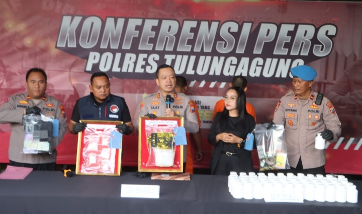 Kali ini, Satresnarkoba Polres Tulungagung jajaran Polda Jatim itu mengungkap Dua kasus dengan barang bukti terbesar pada tahun ini, yakni 1,2 kilogram sabu dan 60.163 butir pil Double L.
