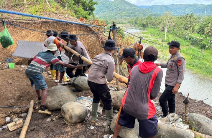 POLRI GERAK CEPAT RESPON PIDATO PRESIDEN PRABOWO, SATBRIMOBDA SULSEL BANGUN JEMBATAN GANTUNG DI SOPPENG