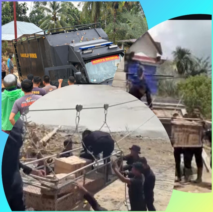 Personel Brimob Polda Sumatera Utara (Sumut) bersama relawan menunjukkan dedikasi luar biasa dalam mendistribusikan bantuan logistik bagi korban bencana.
