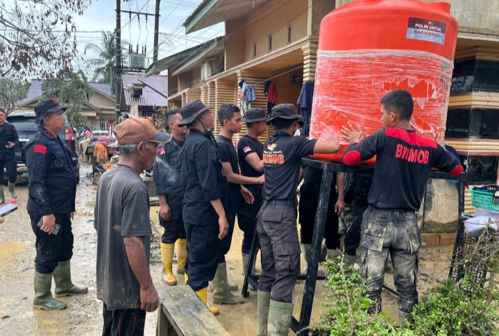 Salah seorang warga Desa Durian menyampaikan apresiasinya atas bantuan tersebut. “Sejak banjir, kami kesulitan mendapatkan air bersih. Kehadiran tandon air dari Brimob sangat membantu kebutuhan kami sehari-hari,” tuturnya.