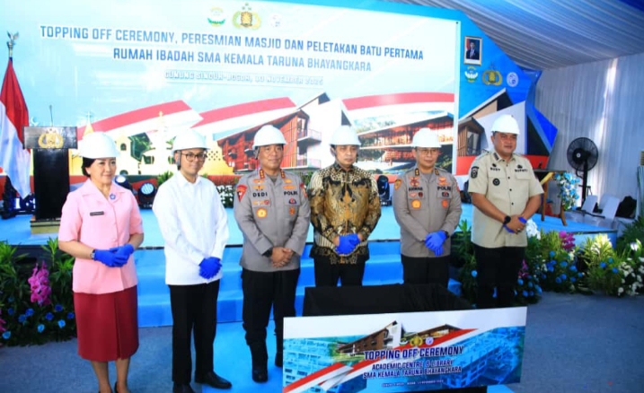 Cybertv.id-Bogor – 13 November 2025-Wakapolri Komjen Pol. Prof. Dr. Dedi Prasetyo Bandung, 13 November 2025-Wakil Kepala Kepolisian Negara Republik Indonesia (Wakapolri) Komjen Pol. Dr. Dedi Prasetyo memimpin kegiatan topping off(tahap akhir penyelesaian struktur utama bangunan, di mana elemen teratas seperti atap dipasang sebagai simbol bahwa pekerjaan konstruksi kerangka bangunan telah selesai dan proyek memasuki tahap penyelesaian (finishing)pembangunan SMA Kemala Taruna Bhayangkara, Gunung Sindur, Kabupaten Bogor, Kamis (13/11).