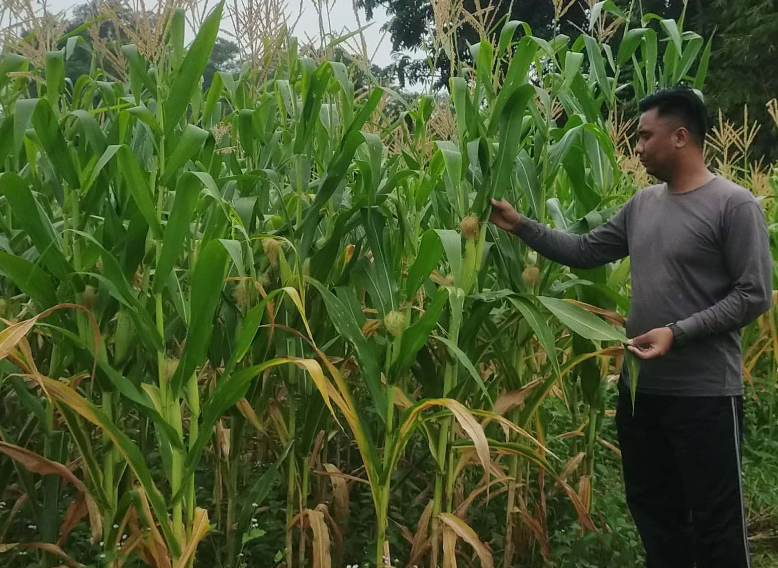 Demplot 1 yang terletak di Dusun Senyabang, Desa Senyabang, menunjukkan perkembangan tanaman jagung yang menggembirakan. Tanaman tumbuh dengan baik dan merata, sebagian besar batang sudah mulai berbunga serta muncul bakal tongkol, tanda kesiapan menuju masa panen dalam beberapa pekan ke depan.