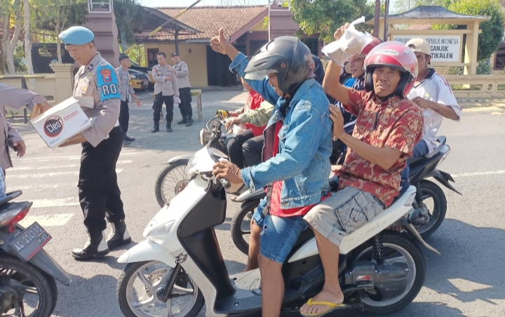 Masyarakat yang menerima nasi bungkus tampak antusias dan mengapresiasi kegiatan tersebut. Beberapa pengguna jalan bahkan sempat menyampaikan terima kasih secara langsung kepada personel Polsek.