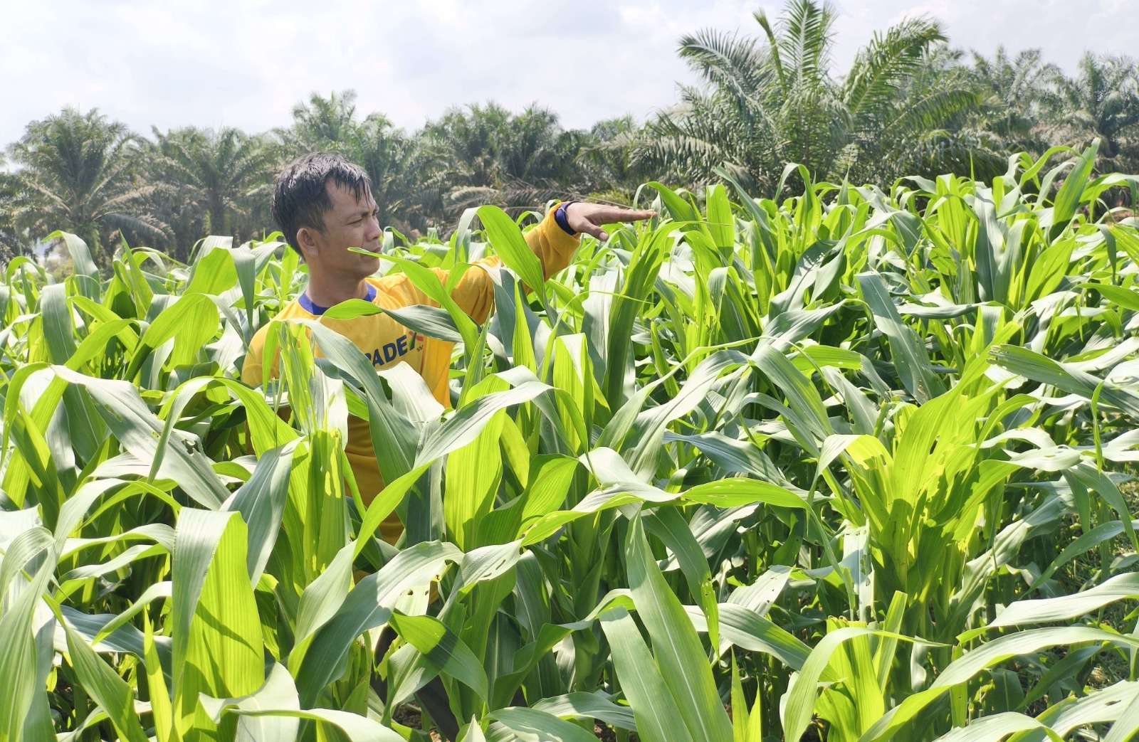 Pada Demplot I, pengecekan difokuskan pada perkembangan tanaman jagung yang saat ini telah berusia 63 hari setelah tanam (HST). Dari hasil pengukuran, tinggi tanaman jagung berkisar antara 190 hingga 220 cm. Selain itu, sebagian tanaman telah menunjukkan hasil dengan munculnya buah jagung. Untuk mendukung kesuburan tanaman, lahan ini telah diberikan pupuk jenis migo dan urea.