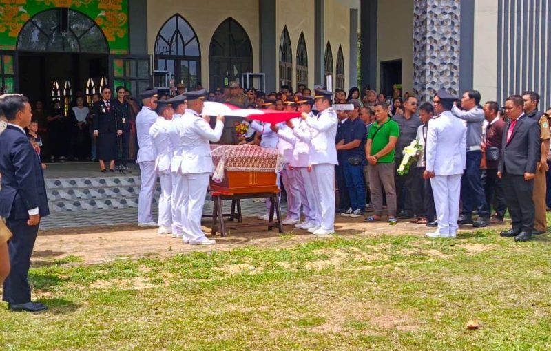 Upacara tersebut berlangsung khidmat dan penuh penghormatan sebelum jenazah diberangkatkan menuju tempat peristirahatan terakhir di Kompleks Pemakaman Yayasan Bhakti Suci, Desa Kedukul, Kecamatan Mukok.
