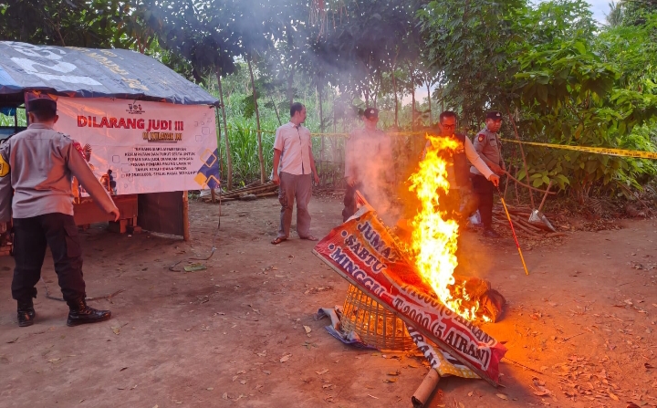 Meski begitu, petugas melakukan pembongkaran serta membakar sarana prasarana yang digunakan untuk mendukung praktik judi sabung ayam tersebut.