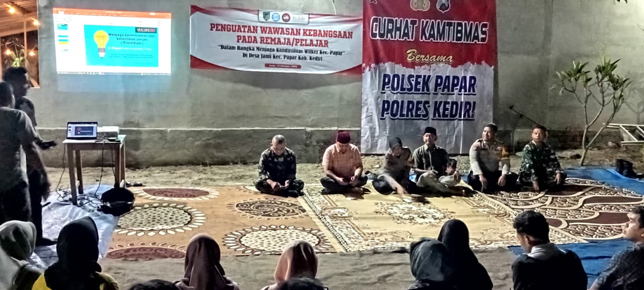 Cybertv.id-Kediri – Dalam upaya mempererat hubungan antara kepolisian dan masyarakat, Polsek Papar Polres Kediri menggelar kegiatan Curhat Kamtibmas bersama warga Desa Janti, Kecamatan Papar, Kabupaten Kediri, pada Selasa (14/10/2025).