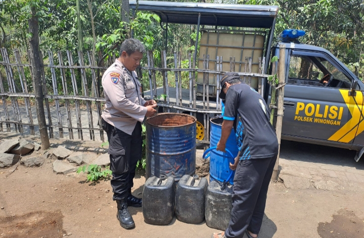 Polsek Winongan Salurkan 2.000 Liter Air Bersih ke Warga Sumberjo