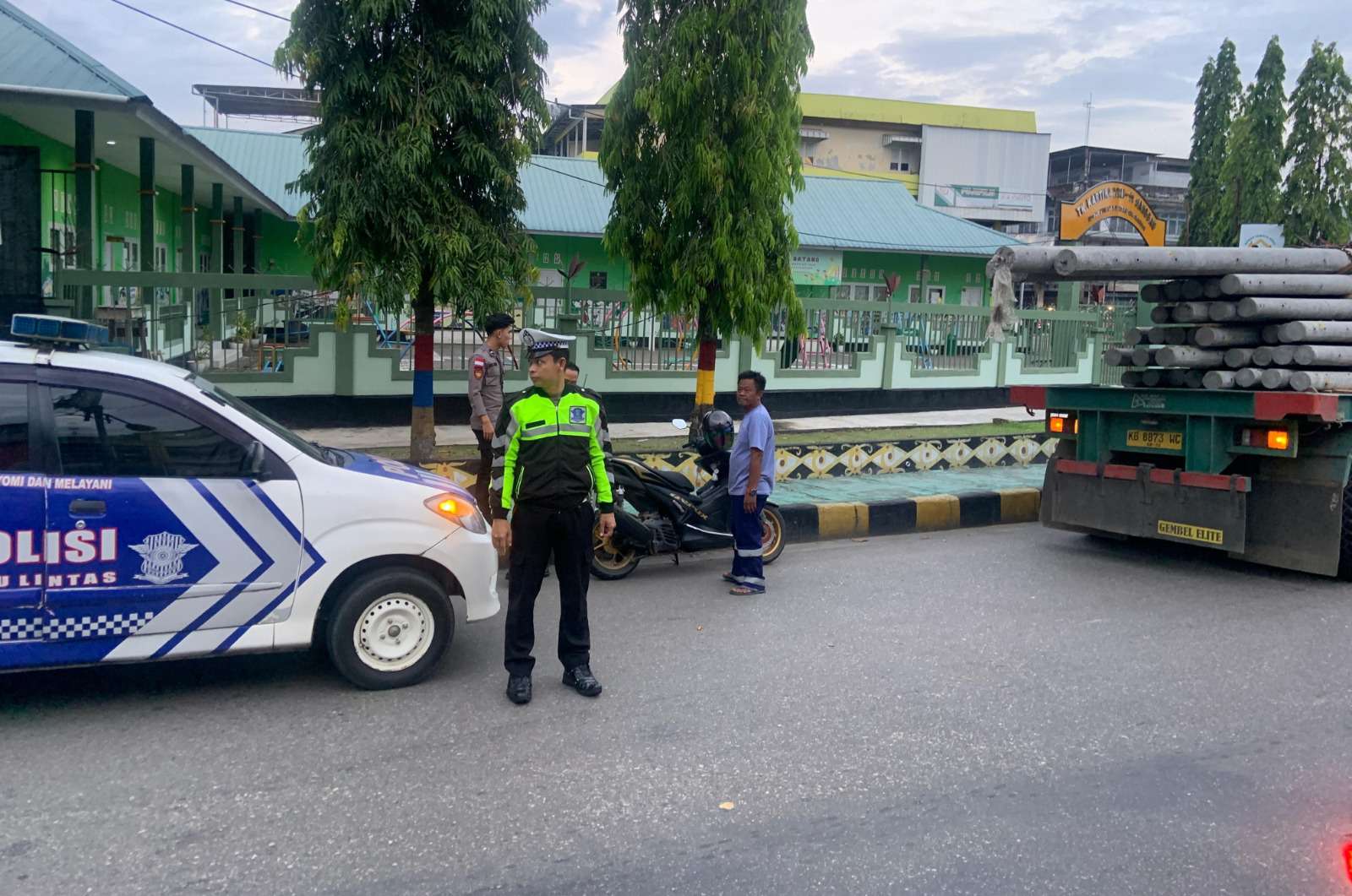 Cybertv.id.- Sanggau, Polda Kalbar – Polres Sanggau kembali menunjukkan kesiapsiagaannya dalam memberikan pelayanan kepada masyarakat. Melalui Unit Pamapta, jajaran kepolisian melakukan respons cepat terhadap laporan adanya sebuah truk tronton yang mengalami kerusakan dan berhenti di badan jalan, tepatnya di Jalan Jenderal Sudirman, Sanggau, pada Sabtu (8/11). Keberadaan kendaraan besar tersebut sempat menimbulkan potensi kemacetan di jalur utama kota.