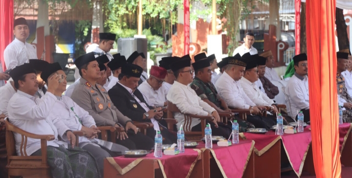 Upacara tersebut dipimpin langsung oleh Bupati Nganjuk Dr. H. Marhaen Djumadi, S.E., S.H., M.M., M.B.A. dan diikuti oleh ribuan santri, pelajar, serta masyarakat.