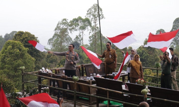 Momentum diawali dengan pengibaran bendera Merah Putih oleh seluruh peserta, mencerminkan semangat nasionalisme yang tumbuh dari desa-desa produktif di lereng Gunung Lawu.