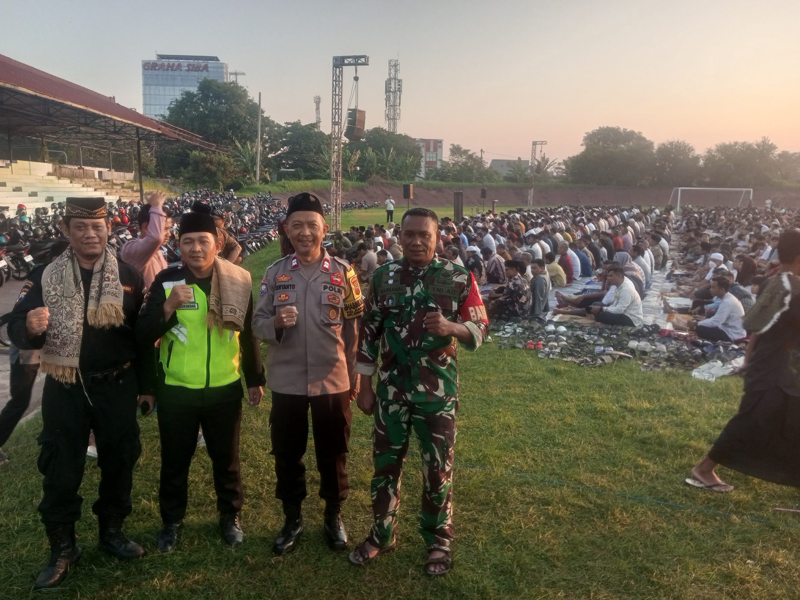 Cybertv.id – Semarang – Jawa Tengah – Sinergitas antara Senkom,TNI dan Polri kembali terlihat dalam kegiatan pengamanan perayaan idul Adha 1446 H di Lapangan Stadion Diponegoro Semarang ,Jumat 06/06/2025.