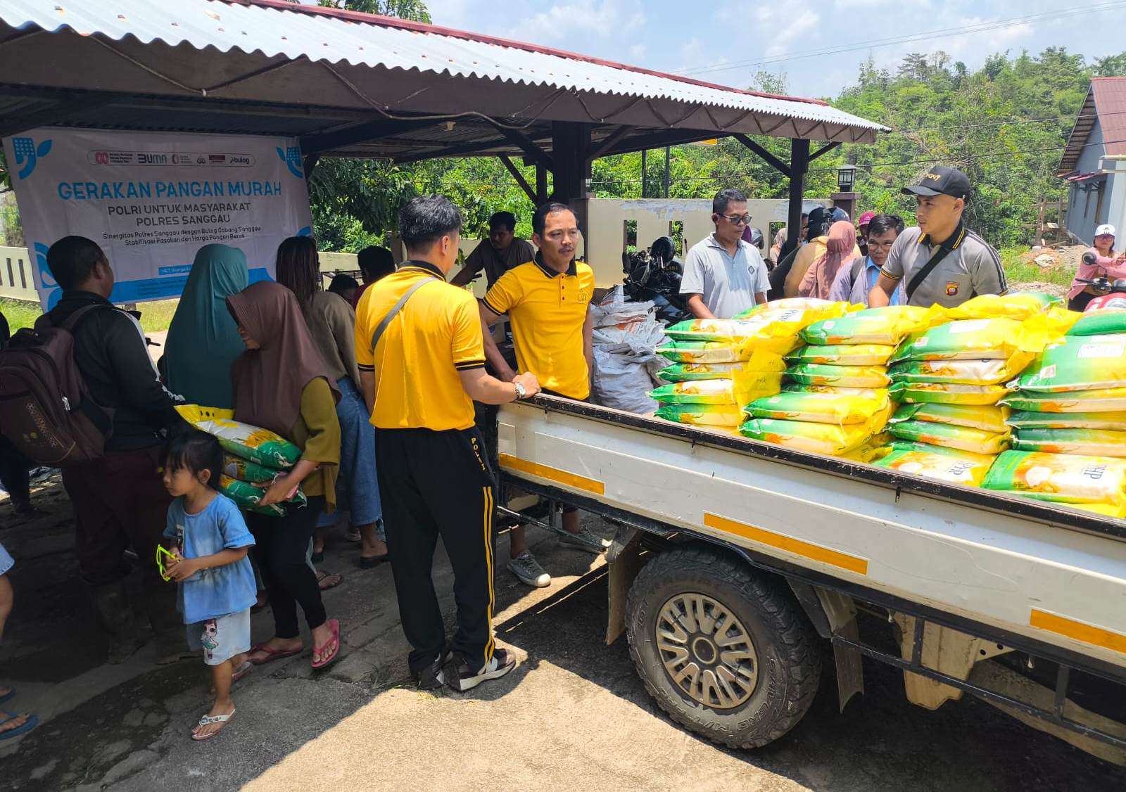 Cybertv.id.- Sanggau, Polda Kalbar – Polsek Bonti bersama Perum Bulog Kabupaten Sanggau menggelar Gerakan Pangan Murah (GPM) untuk masyarakat di Kecamatan Bonti. Kegiatan ini berlangsung pada Sabtu (27/9/2025) di halaman Garasi Polsek Bonti, Jalan Merdeka, Dusun Bonti Selatan, Desa Bonti.