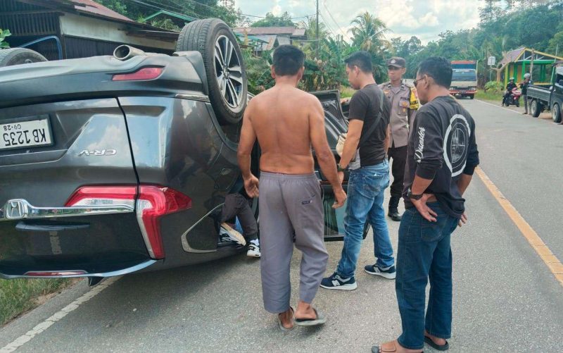 Cybertv.id.- Sanggau, Polda Kalbar – Kecelakaan lalu lintas terjadi di Jalan Raya Beduai, tepatnya di Dusun Beduwai, Desa Bereng Berkawat, Kecamatan Beduai, Kabupaten Sanggau, pada Minggu, 19 April 2026 sekitar pukul 11.30 WIB. Insiden tersebut melibatkan satu unit minibus Honda CR-V dan satu unit Mitsubishi Pick Up T120SS yang tengah terparkir di tepi jalan.