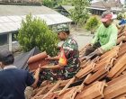 Cybertv.id – Blitat – Babinsa Desa Maron Koramil 0808/06 Srengat Koptu Librek, bersama warga masyarakat melaksanakan kegiatan kerja bakti membantu pemasangan atap