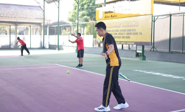 Kapolres Kediri AKBP Bramastyo Priaji, S.H., S.I.K., M.Si. melaksanakan olahraga tenis lapangan bersama jajaran BRI Cabang Kediri, dalam suasana hangat dan penuh kekeluargaan.