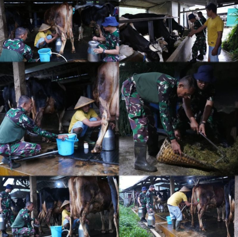 Kegiatan tersebut berlangsung di Dusun Barurejo, Desa Krisik Kecamatan Gandusari Kabupaten Blitar, Sabtu (14/2/2026). Anggota Satgas TMMD Ke-127 tampak berbaur bersama warga, membantu aktivitas keseharian peternak sapi perah setelah menyelesaikan sasaran fisik pembangunan.