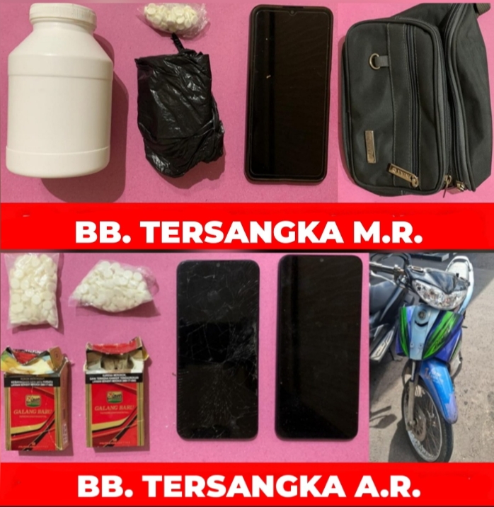 Dari hasil penggeledahan di rumah MR, petugas menemukan barang bukti pil dobel L dalam jumlah besar yakni 1.044 butir, yang disimpan dalam botol plastik dan kemasan lainnya, beserta satu unit telepon genggam dan tas selempang.