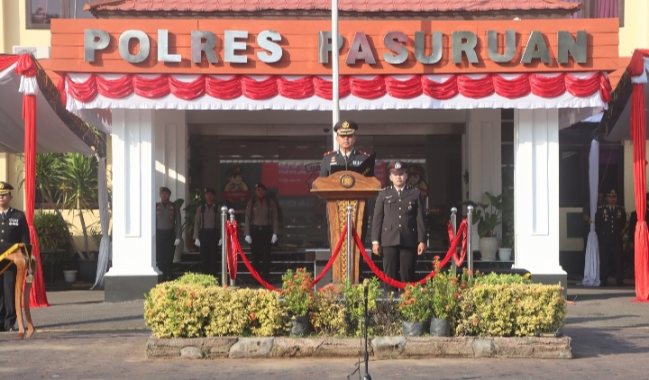 Upacara dimulai pukul 07.00 WIB dipimpin oleh Wakapolres Pasuruan, Kompol Andy Purnomo, dan diikuti oleh personel Polres serta ASN.