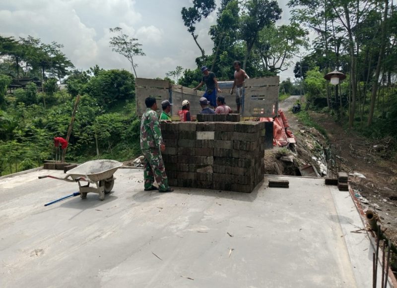 Wujud Babinsa Kebonduren Bersama Warga Kerja Bakti Pasang Dinding Pembatas Jembatan Perintis Garuda Kali Complang