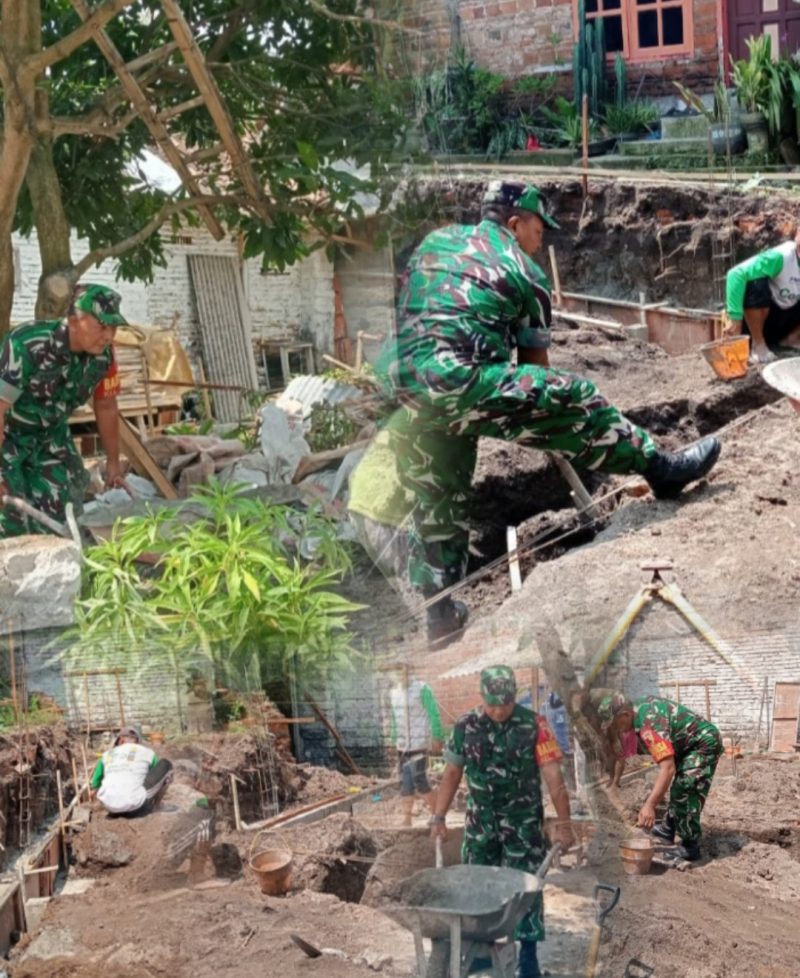 Wujud Kemanunggalan TNI Dan Rakyat, Babinsa Bence Bantu Gali Pondasi Rumah Warga