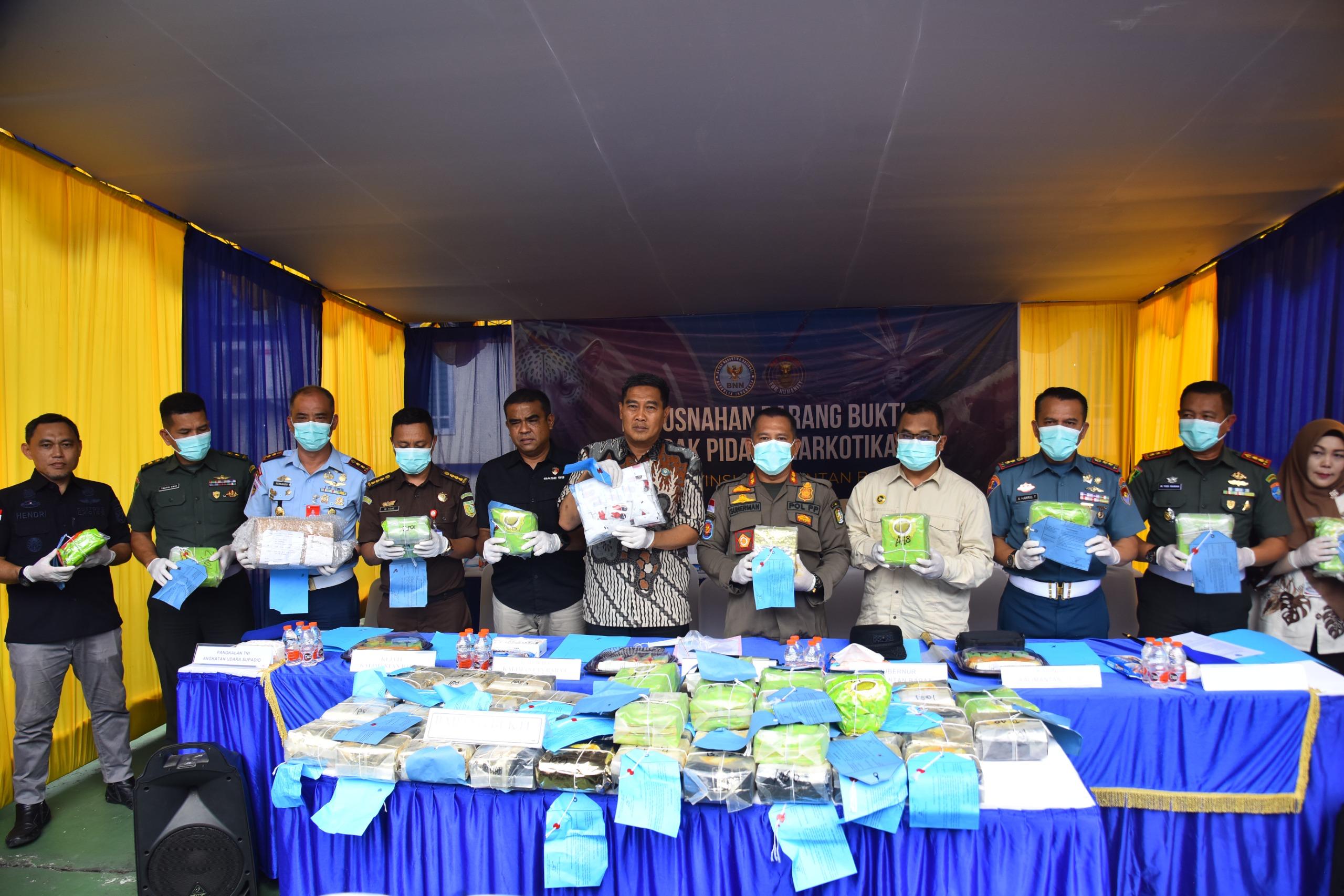 Adapun barang bukti yang dimusnahkan terdiri dari Shabu seberat 60.832,41 gram, Ganja kurang lebih 911 gram, serta MDMA cair sebanyak 93 bungkus dengan berat bruto 717,65 gram. Pemusnahan dilakukan secara simbolis disaksikan oleh seluruh tamu undangan sebagai wujud komitmen bersama dalam menindak tegas penyalahgunaan dan peredaran narkotika.