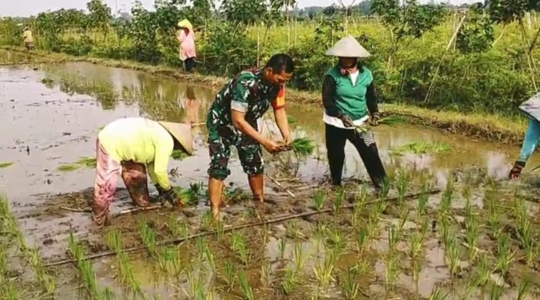 Cybertv.id-Blitar-Babinsa Kelurahan Srengat Koramil 0808/06 Srengat Serka Ali Japar, melaksanakan kegiatan ketahanan pangan dengan membantu warga menanam padi di lahan pertanian milik Bapak Sujoko. Kegiatan tersebut berlangsung di RT. 2 RW. 1 Kelurahan Srengat Kecamatan Srengat Kabupaten Blitar, pada Minggu (14/12/2025).