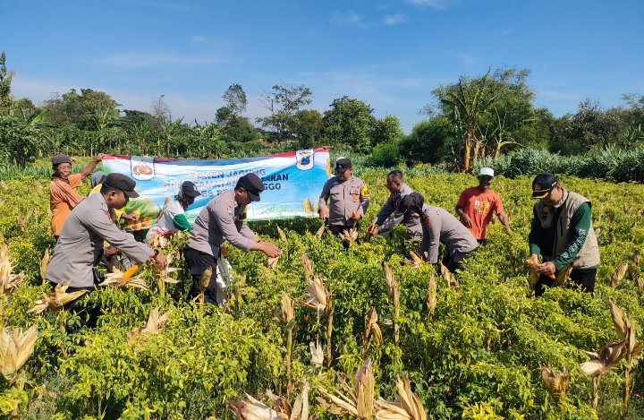 Wujudkan Program Ketahanan Pangan Polres Probolinggo Bersama Kelompok Tani Panen Jagung di Bantaran